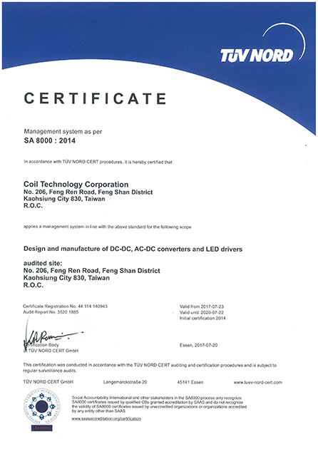 頻譜電子在2014年6月獲得TUV NORD的SA8000認證。SA8000的認證是展現企業會社會責任的認同的態度。SA8000的標準是建立在國家法律、國際勞工組織公約(ILO)及聯合國的人權公約協定的基礎上。