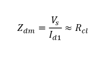 To calculate the differential-mode impedance, the input voltage is divided by the differential-mode input current: