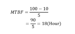 舉例來說電源轉換器總運轉時間100小時,期間發生5次故障,MTBF的計算如下: